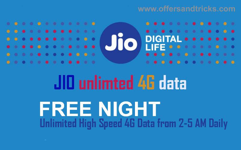 रिलायंस जियो ने जल्दी में ही एक नया नियम बनाया है कि अगर आप रात 2 बजे से सुबह 5 बजे तक डाटा यूज करते हैं तो इससे आपका 1 जीबी डाटा सुरक्षित बचा रहेगा ।